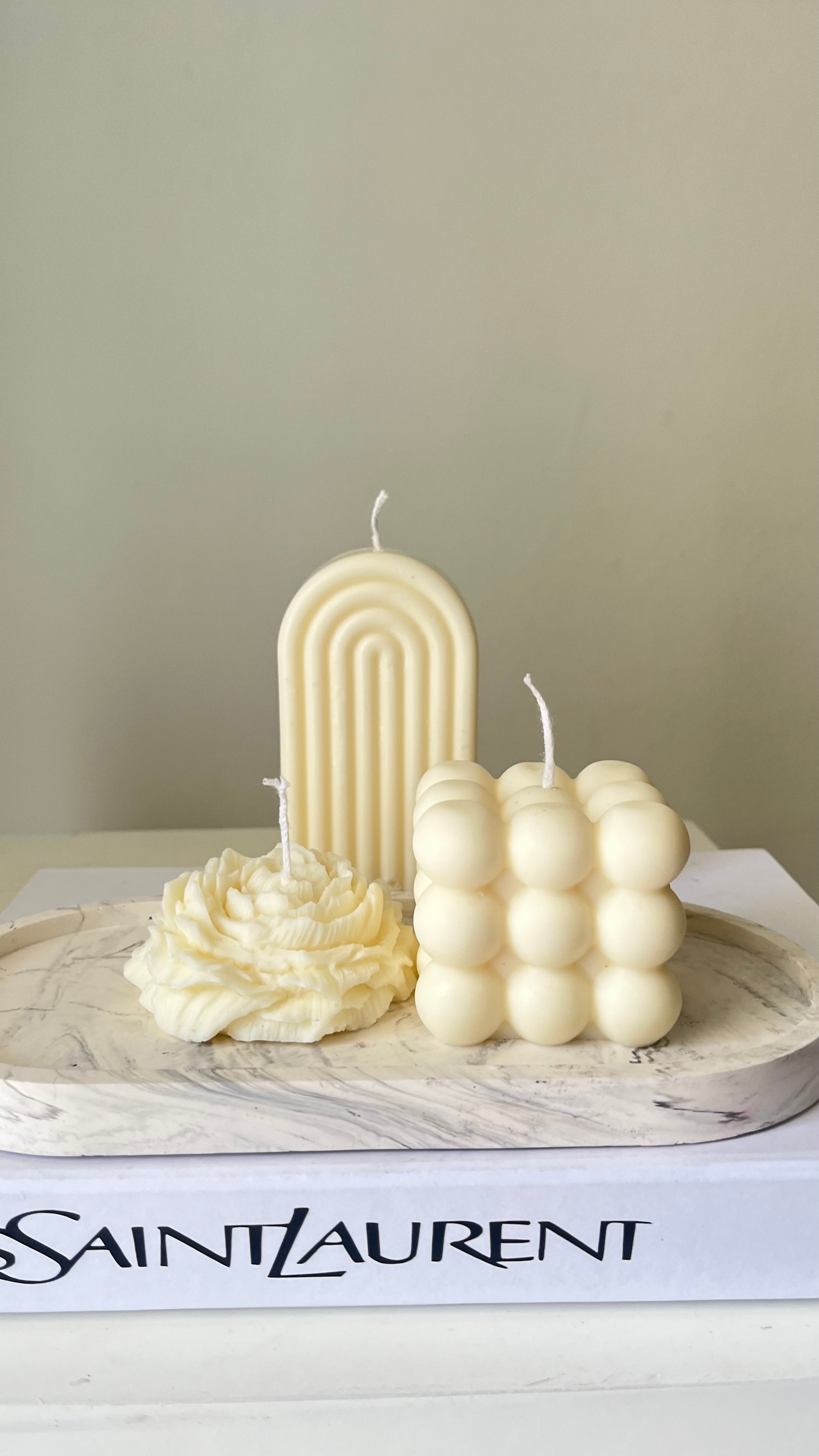Hand-poured using 100% natural soy wax. Its curved arch silhouette makes it perfect for shelf styling, coffee table décor, bedside displays, flatlays, and gifting. Whether styled alone or stacked with books and trays, this candle brings a warm, modern touch to your home without bright colours, just pure aesthetic.
